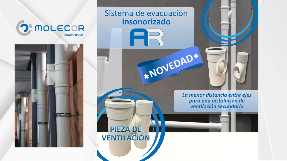 Molecor dispone en el mercado de un accesorio para ventilación silenciosa AR, una pieza de ventilación específica para su Sistema de Evacuación Insonorizado AR®, diseñada par