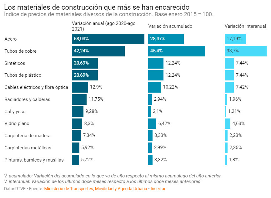 El encarecimiento de la madera o el acero provocan importantes cambios en la oferta y demanda global. (Acero, hierro, aluminio, PVC, vidrio…), son algunos de los materiales que también han visto afectados sus precios de venta.