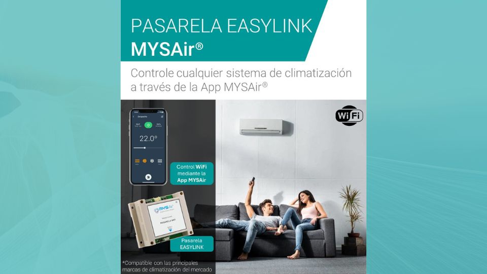 La pasarela de comunicación Wi-Fi EASYLINK de MYSAir ha sido creada para proporcionar un control integral y remoto de cualquier sistema de aire acondicionado y climatización a través de la aplicación MYSAir. Esta innovadora solución permite gestionar de forma eficiente las instalaciones tanto en el ámbito residencial como en entornos comerciales.