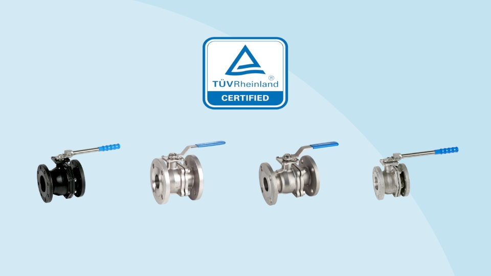 - 2528: Válvula de esfera de paso total, bridas DIN PN40, hecha de acero inoxidable 1.4408 (CF8M). Compatible con presiones de hasta 40 bar y temperaturas entre –30 ºC y +180 ºC. Ofrece diseño antifuego y dispositivo antiestático.